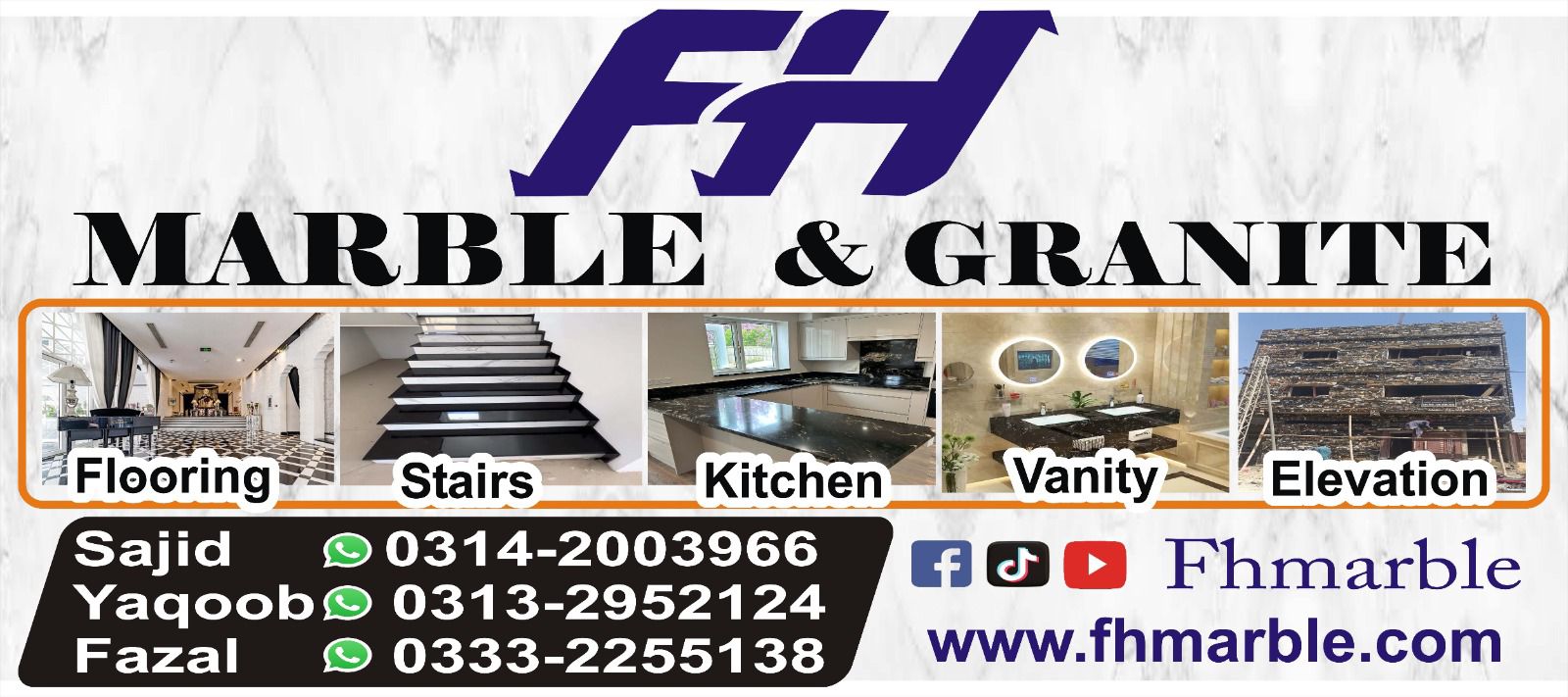 کراچی میں بہت جگہیں دیکھنے کے بعد FH Marble سے لیا۔ جو ماربل دکھایا تھا وہی ملا، کوئی فرق نہیں تھا۔ قیمت بھی مناسب لگی۔ آئندہ بھی یہی سے لوں گا۔